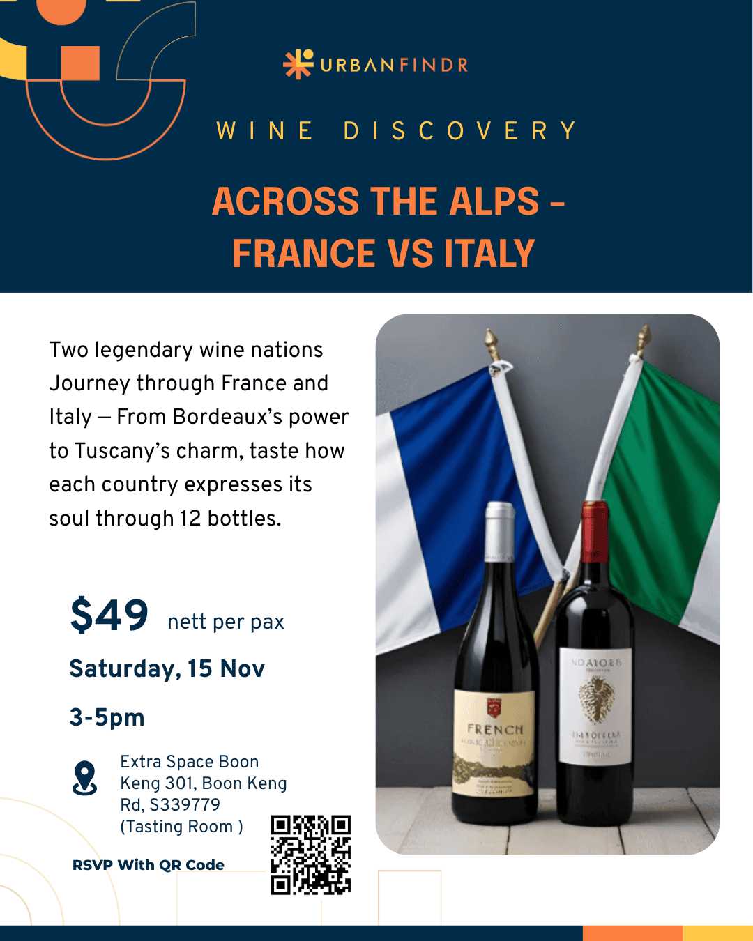 From Bordeaux’s power to Tuscany’s charm, taste how each country expresses its soul through 12 bottles. Discover the elegance of French finesse and the warmth of Italian passion as we explore iconic reds from both sides of the Alps. Each pour tells a story of heritage, terroir, and timeless artistry — a celebration of two nations that shaped the world of wine.